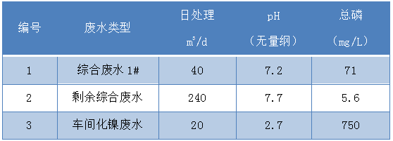 含磷廢水除磷方案 含有次磷酸鹽和亞磷酸鹽的廢水,往往很難被常規(guī)鐵/鋁/鈣系除磷劑徹底沉淀去除,需配合相應的除磷工藝與高效的除磷劑來深度處理。 某公司生產(chǎn)過程中會產(chǎn)生含磷廢水,原有除磷工藝存在加藥量大、運行成本高等問題,原水情況如下表所示。