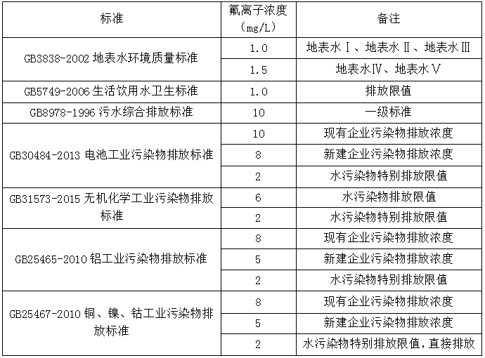 含氟廢水的特點、排放標準及處理方案 一、氟的來源 造成工業(yè)氟污染的氟化物主要來源于冶金工業(yè)的煉鋁、煉鋼,化學工業(yè)的磷肥和氟塑料生產,硅酸鹽工業(yè)的磚瓦、陶瓷、玻璃、耐火材料的生產,電力工業(yè)的燃煤發(fā)電等。 二、氟的危害 污染環(huán)境,引起人、畜中毒,并引發(fā)一系列嚴重疾病。 三、氟的形態(tài) 在含氟廢水中以離子或絡合態(tài)存在,或與一些有機配體形成復雜的絡合物和螯合物。 四、氟離子排放標準