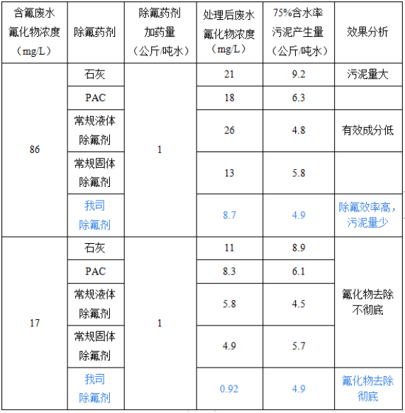 含氟廢水的處理方法有多種,有混凝沉淀法、化學沉淀法、吸附法、離子交換法、膜過濾法、電化學法等,這里介紹一種原理簡單、處理方便、成本低、效果好的方法——投加高效除氟劑(RECY-DAF-01型),其原理是與廢水中的氟離子進行絡合反應形成不溶性沉淀物。