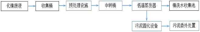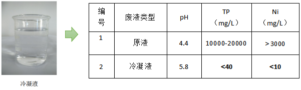 化鎳廢液經(jīng)低溫蒸發(fā)處理后,產(chǎn)生的冷凝液污染物濃度大幅降低,納入現(xiàn)有含鎳洗水處理設施進行處理。濃縮液蒸發(fā)減量后可以投加RECY-CAL-01型固化劑進行固化,后委外處置。