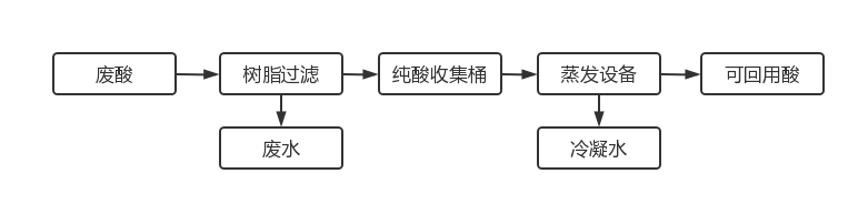為解決此問題我司進(jìn)行了酸回收實(shí)驗(yàn)。采用交替流動離子交換法回收酸液的處理方法,由于樹脂具有與不同離子結(jié)合力強(qiáng)弱的不同,其優(yōu)先吸附溶液中的強(qiáng)酸,酸液中的金屬鹽保持在溶液中,用水將樹脂上吸附的酸液洗脫下來,從而達(dá)到酸純化的目的。